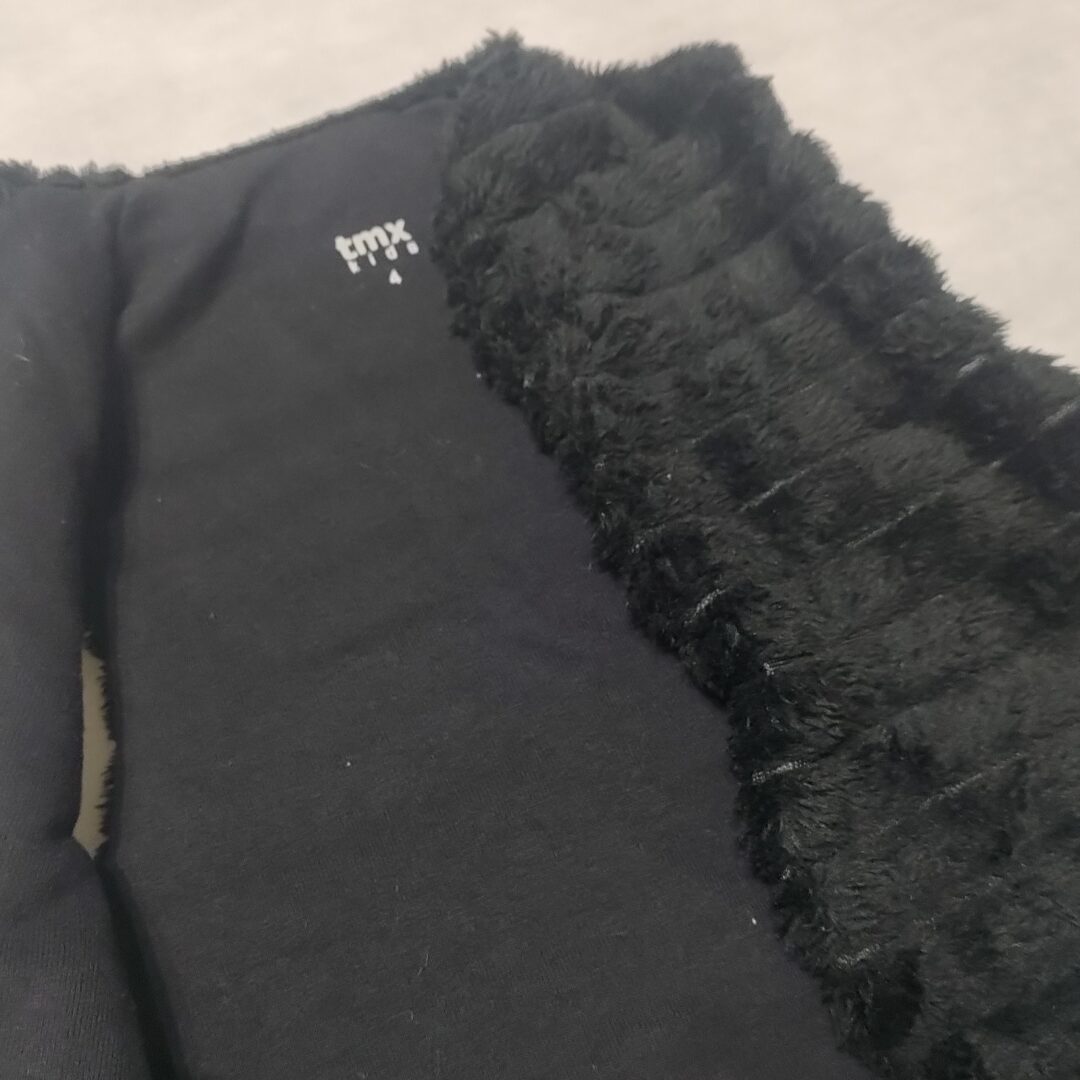 Tecido em pelo falso e forro em algodão.